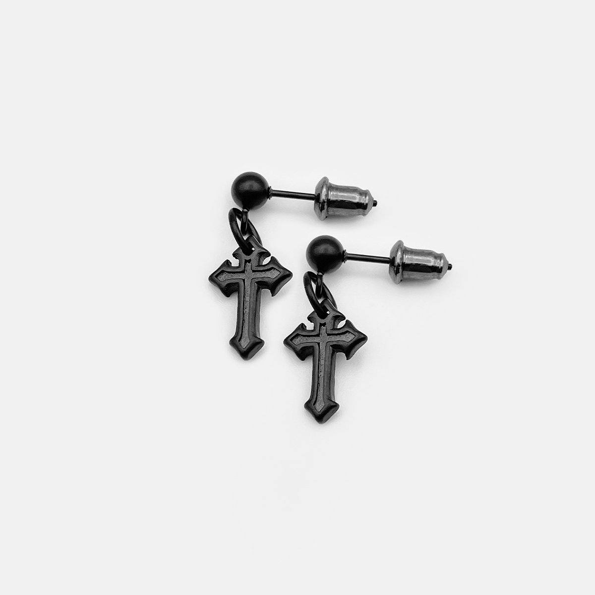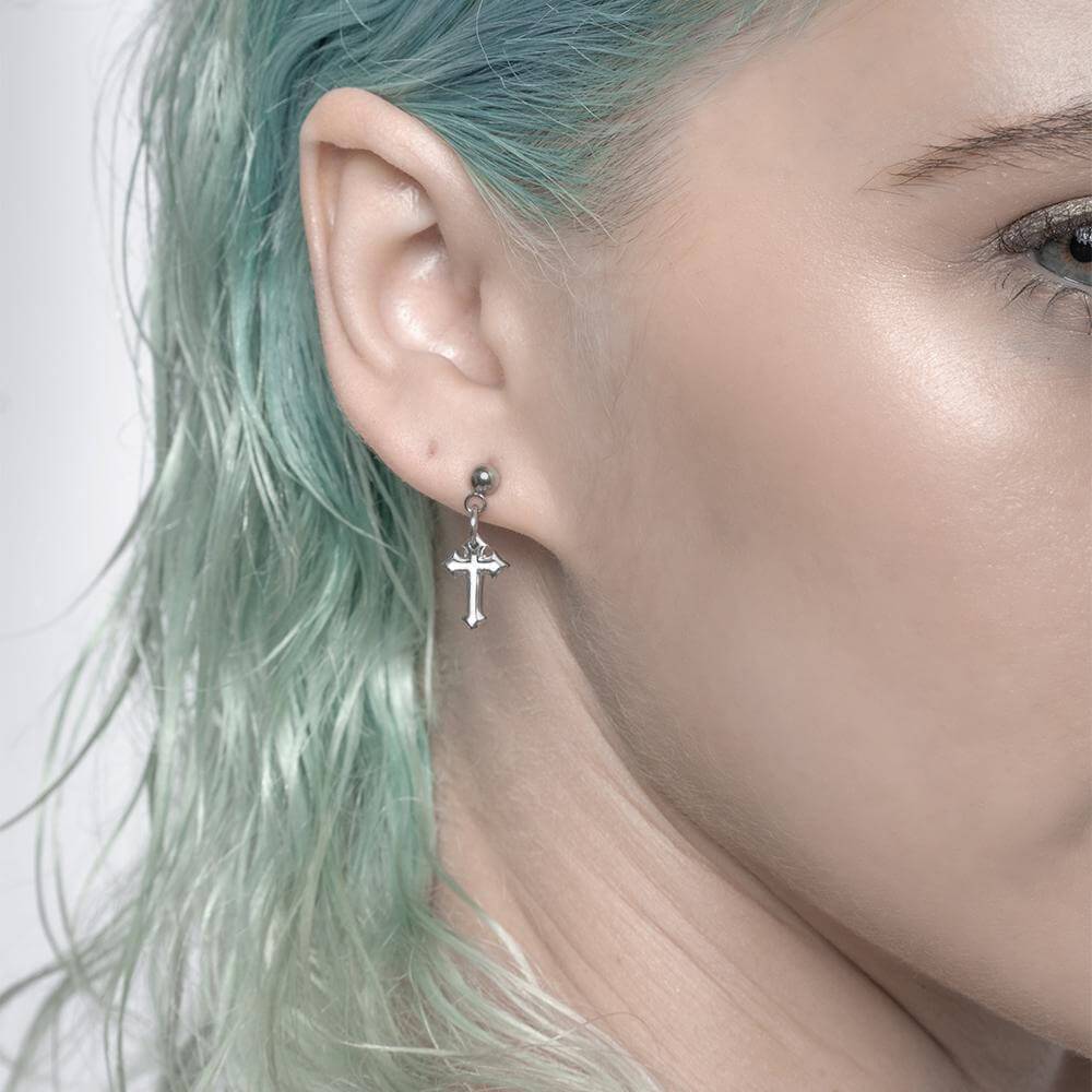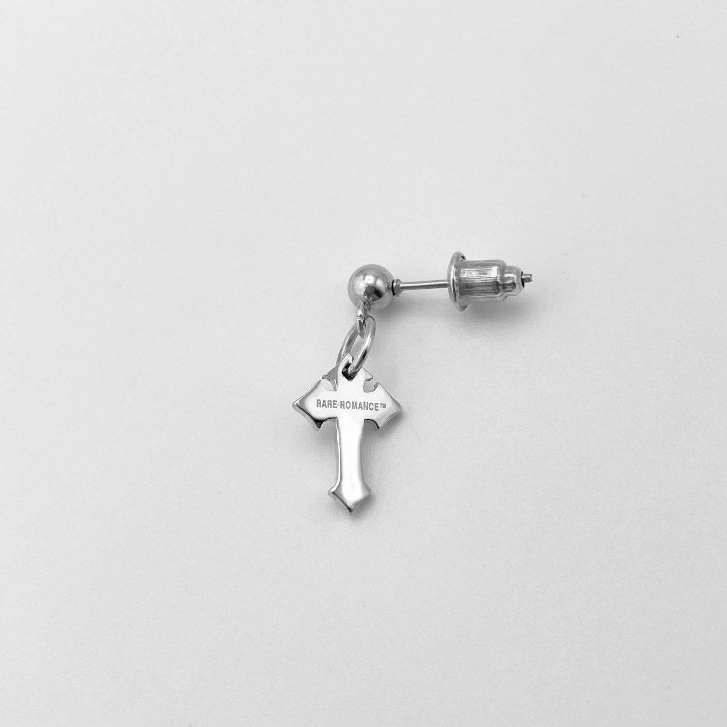 Made of hypoallergenic stainless steel available in gold and silver finishes, these earrings have a dangle cross featuring the RARE-ROMANCE™ logo detail on the back. Engineered with designer and skin safe sensibility. Ships in RARE-ROMANCE™ branded packaging, perfect for gifts.
