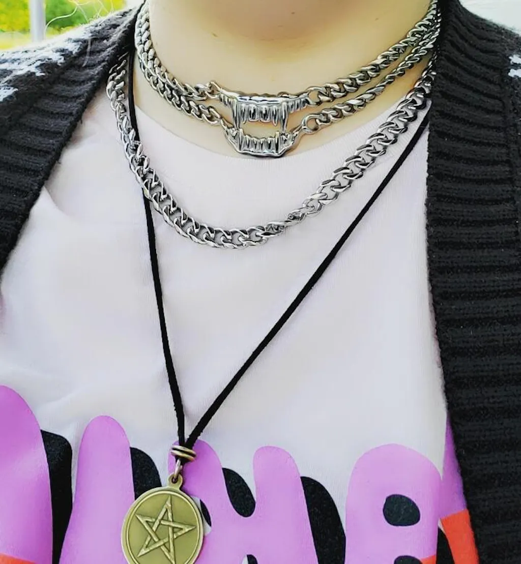 Our best-selling Bite Me Dual Chain is an original RARE-ROMANCE™ piece. With its provocative design the necklace makes a bold statement. Paired with the extra heavy cuban chain, the combination creates a modern, timeless look. Both pieces can be styled as a choker or a longer necklace. Ships in custom packaging, perfect for gifts.