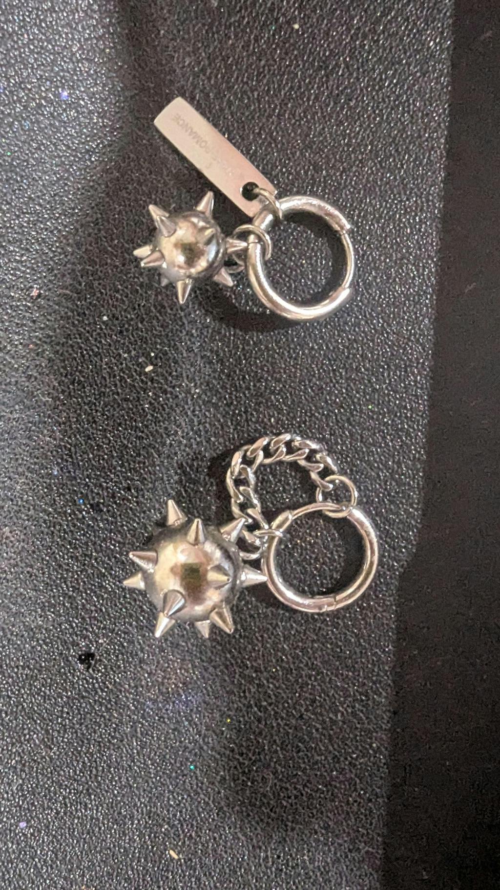 Este arete con forma de bola Spike está disponible en 5 combinaciones de colores diferentes con puntas soldadas a mano y un dije con el logotipo grabado. Esta pieza viene con un aro adicional para que puedas diseñar los dijes como un arete único o dividir los dijes entre los dos aros incluidos. Se envía en ROMANCE RARO ™, perfecto para regalar.