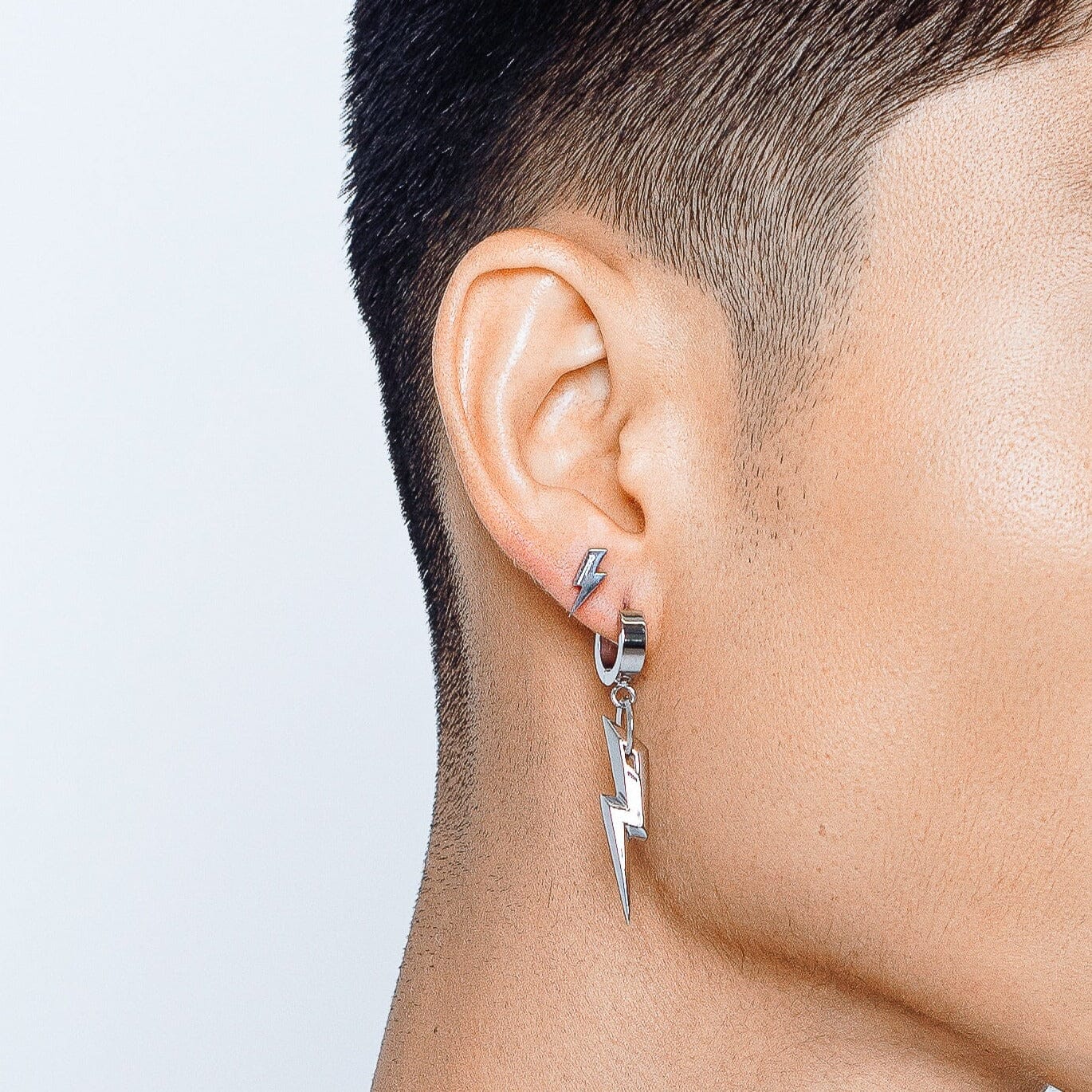 Pequeño, pero poderoso. Este pendiente en forma de rayo es el complemento perfecto para realzar cualquier look o para usarlo solo como un look elegante todos los días. Compuesto en tres dimensiones para una composición lujosa. Está grabado nuestro clásico emblema R.