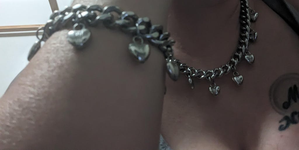 Corazones tiernos cuelgan con lujo ponderado de la cadena cubana. Este diseño combina el arte de las formas suaves con una poderosa cadena que representa el equilibrio perfecto entre delicadeza y agresividad. Cada corazón está grabado con el icónico logotipo de RR. Combina perfectamente con la pulsera cubana con dije de corazón.