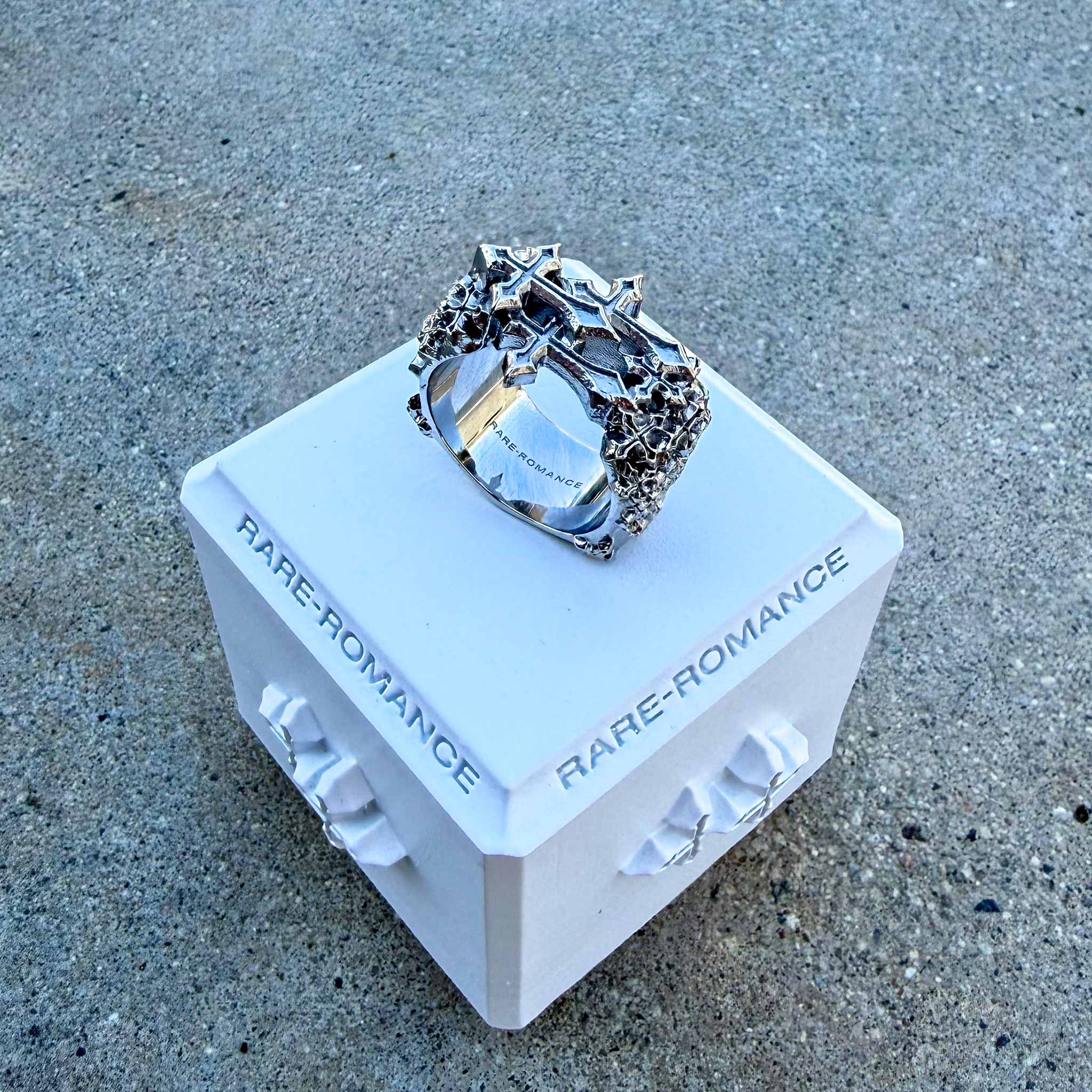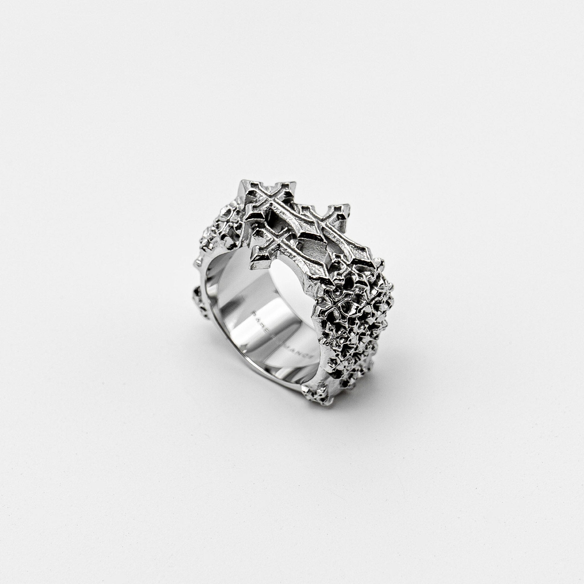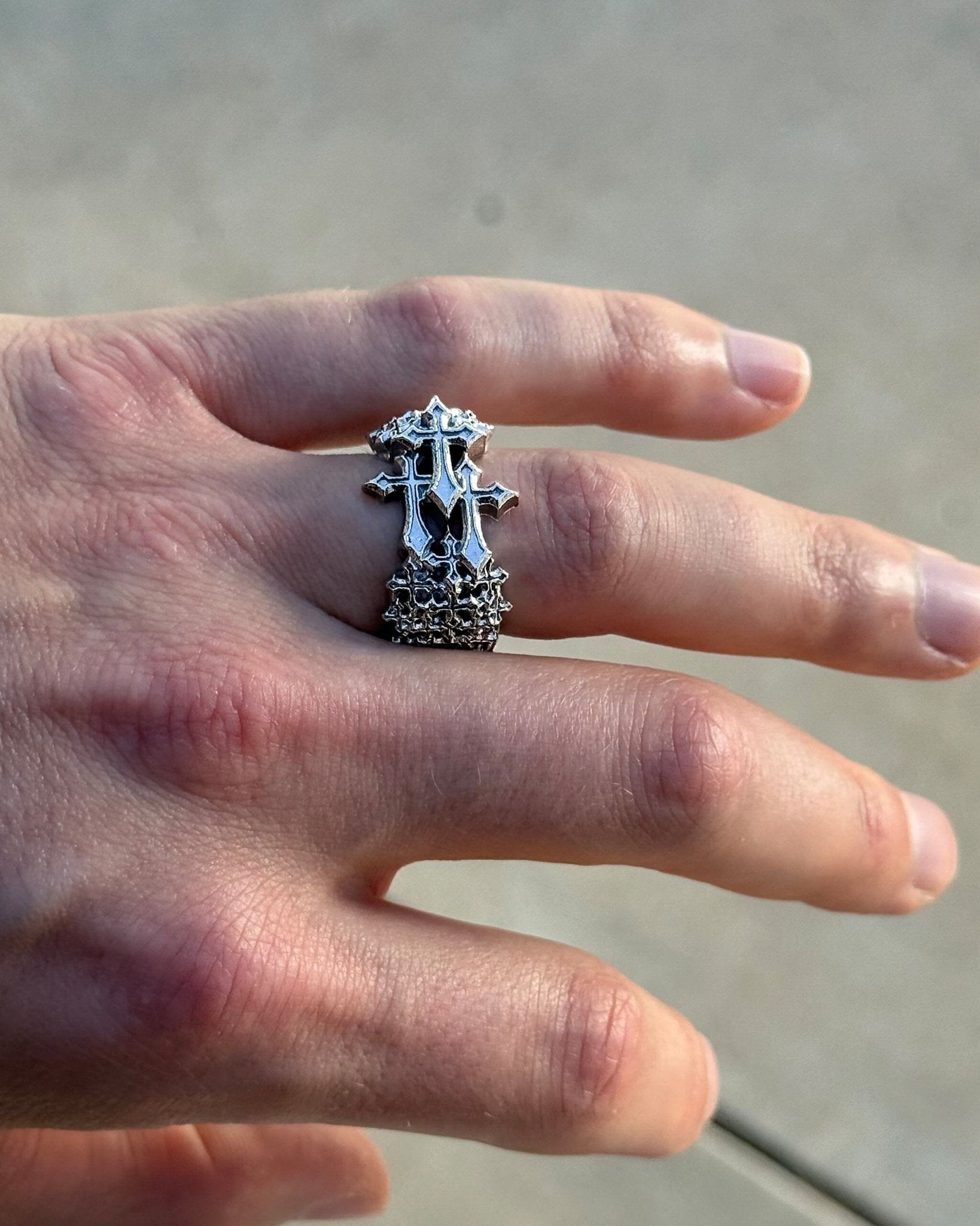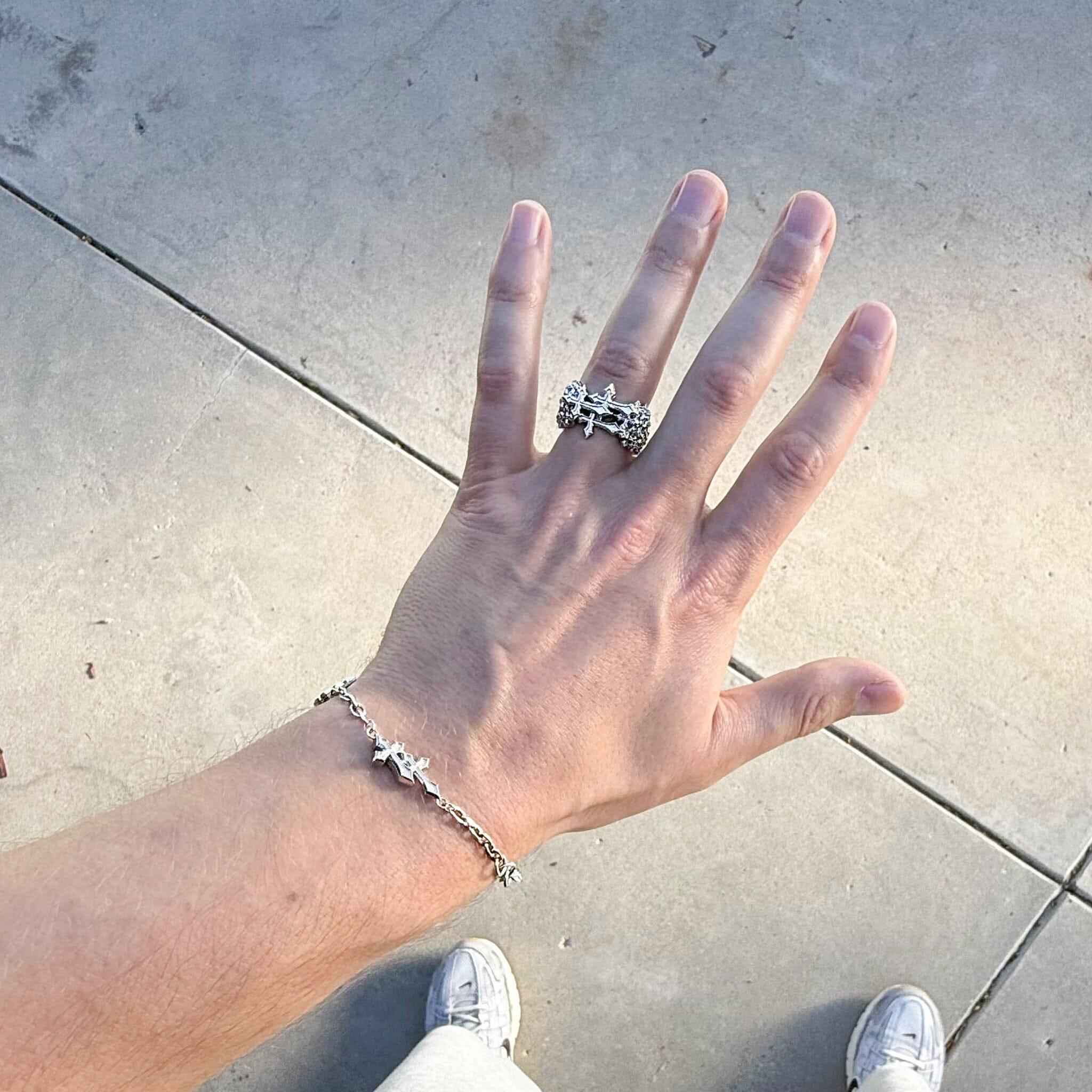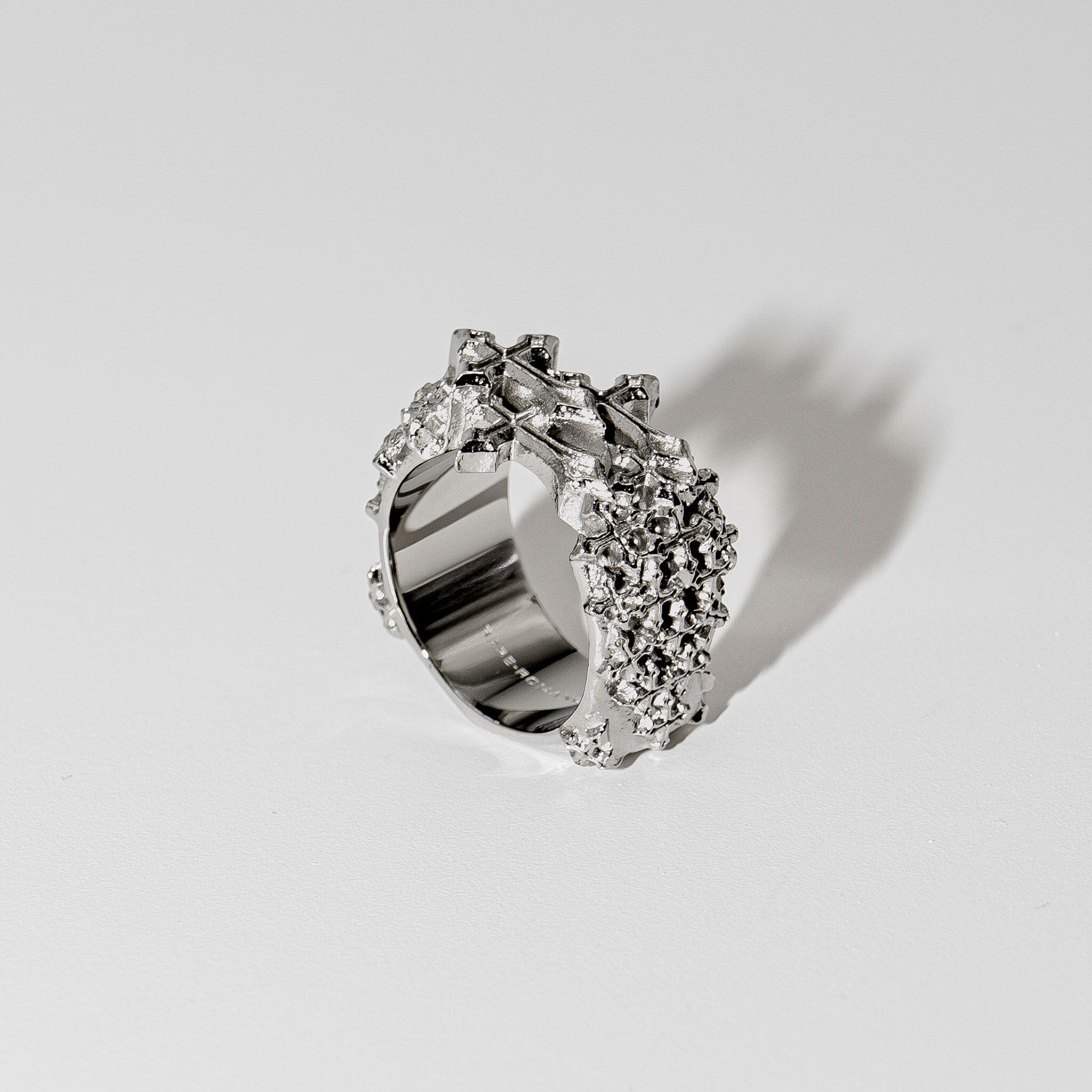 The mix of sizes adds depth, giving the ring a more dimensional, uneven look from every angle.