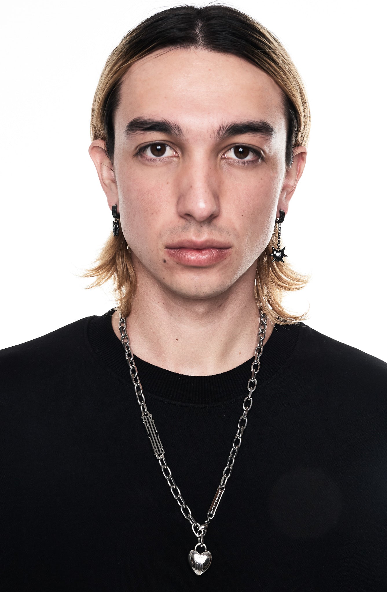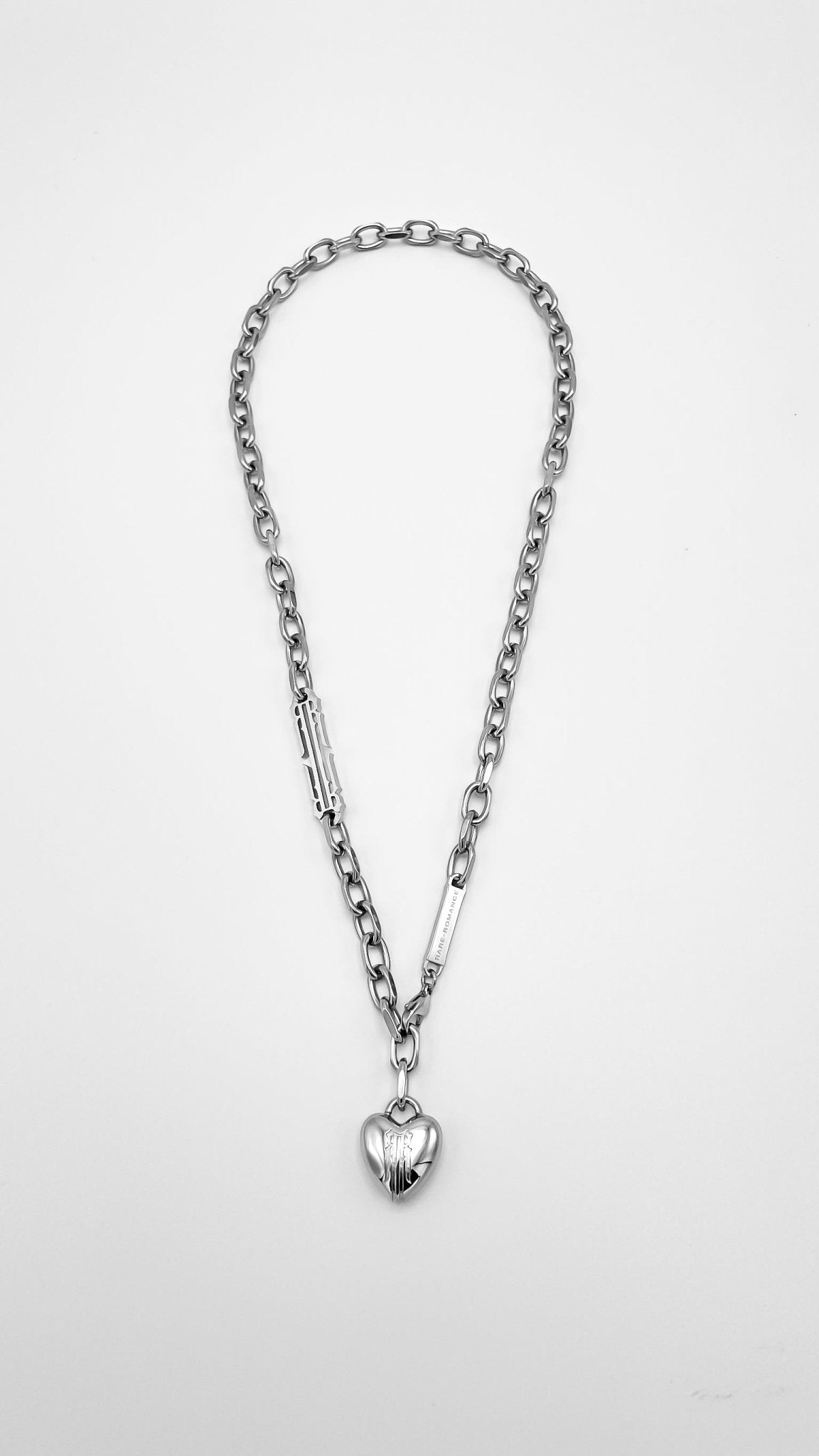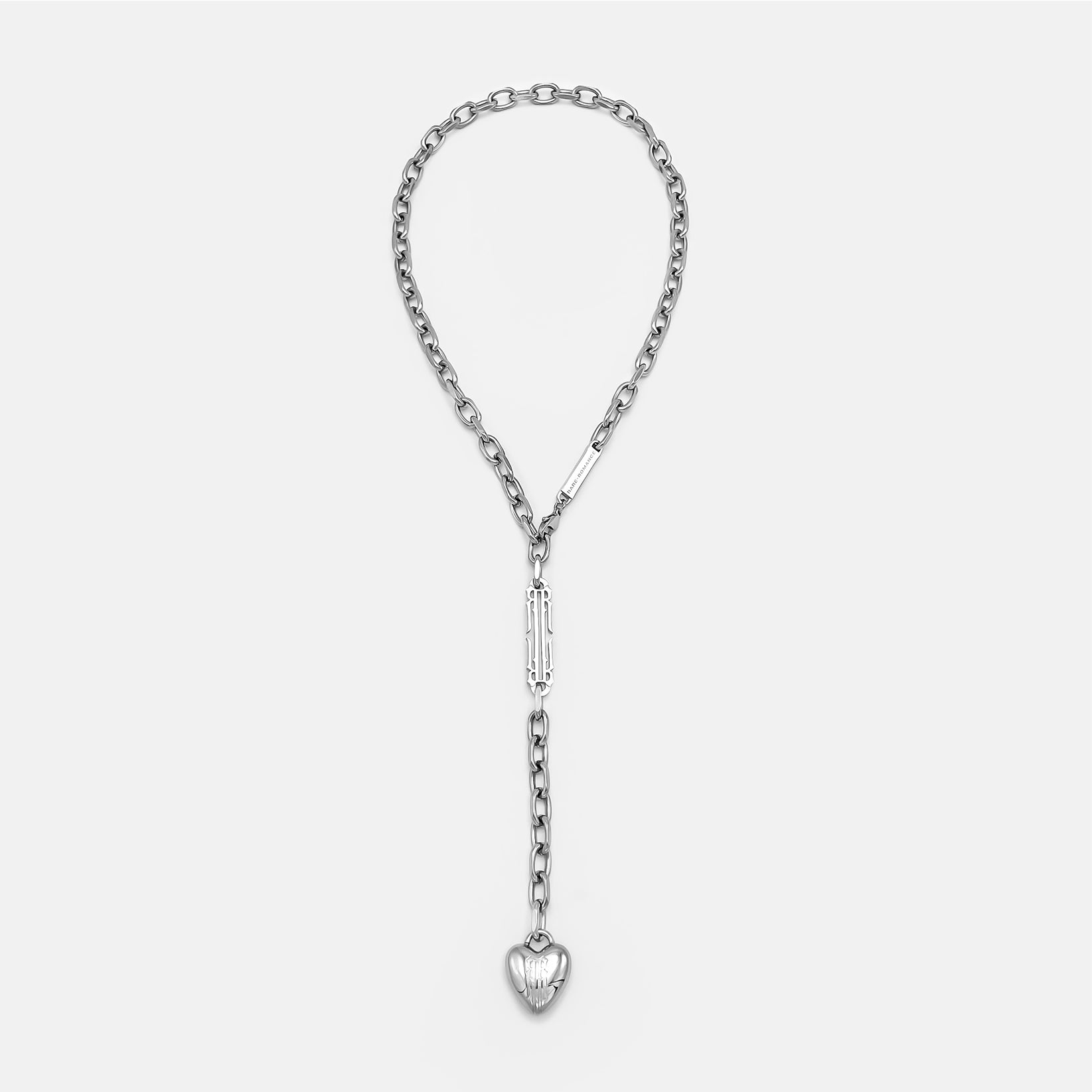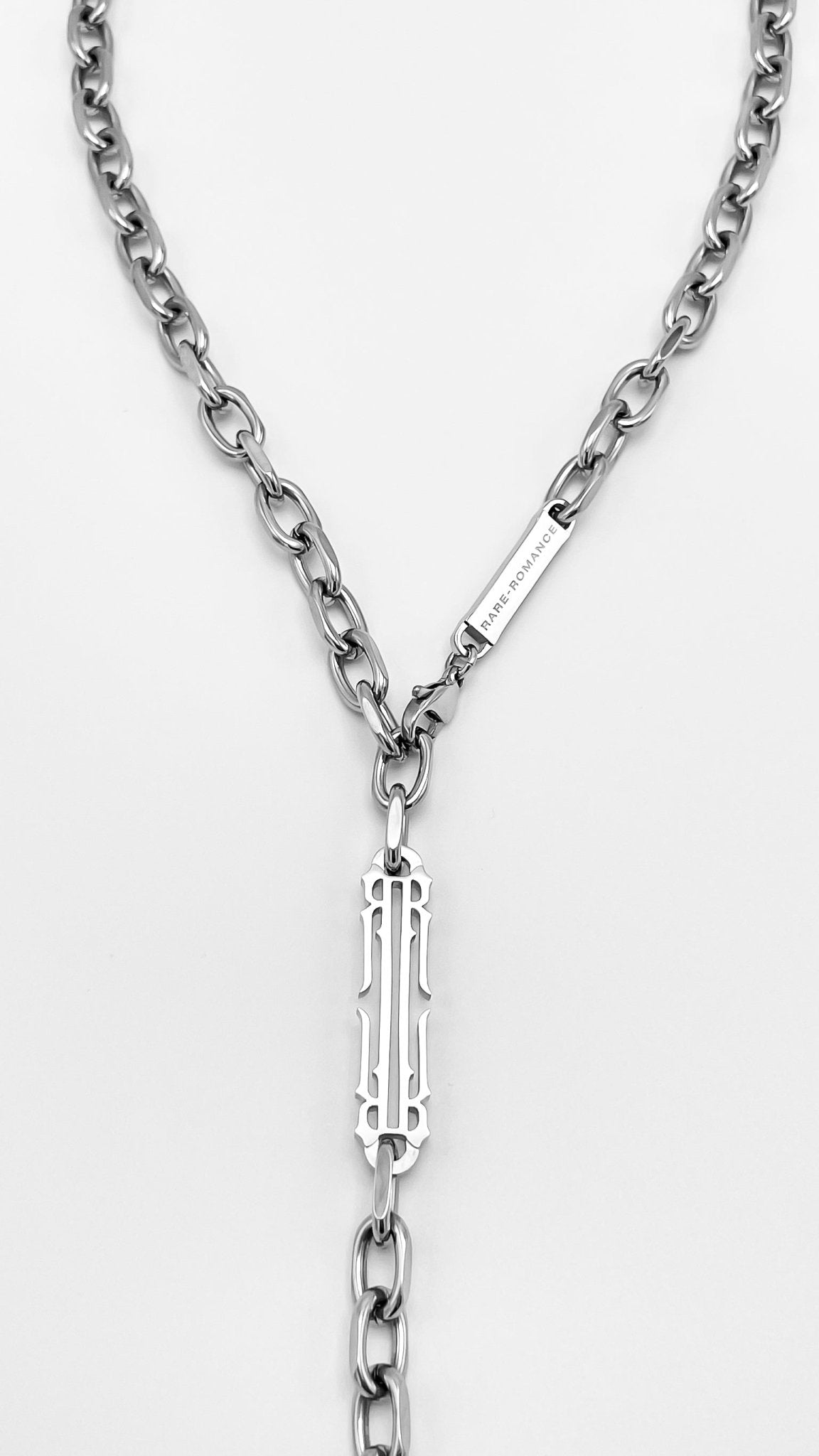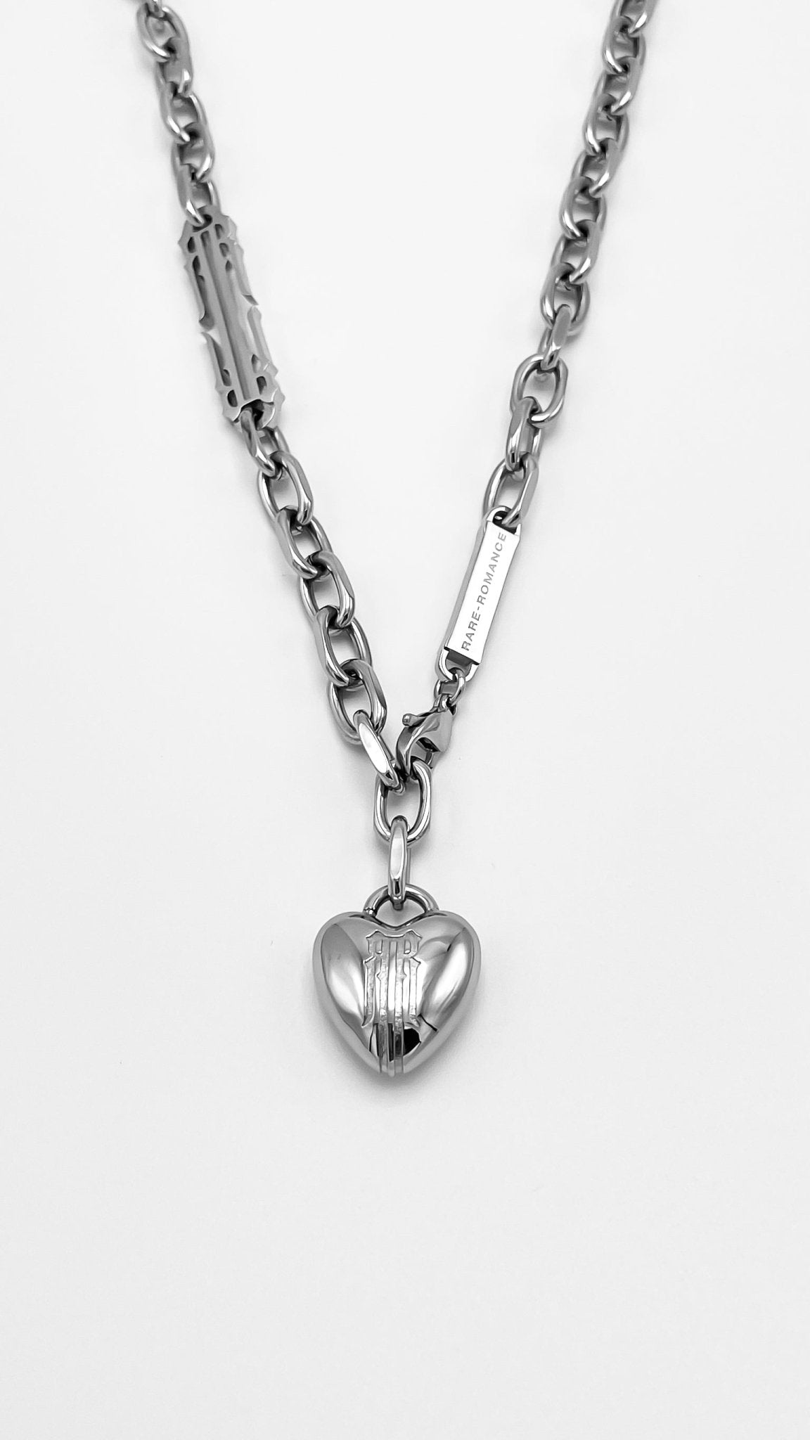 Una versión moderna del rosario, esta cadena rezuma lujo con acentos agresivos; combinando el arte de las formas suaves con una poderosa cadena. Detallada con el icónico logo RR, la cadena sostiene un corazón de burbuja ponderado grabado con el detalle RR. La arquitectura de la cadena permite un estilo versátil para marcar la diferencia con cualquier look.