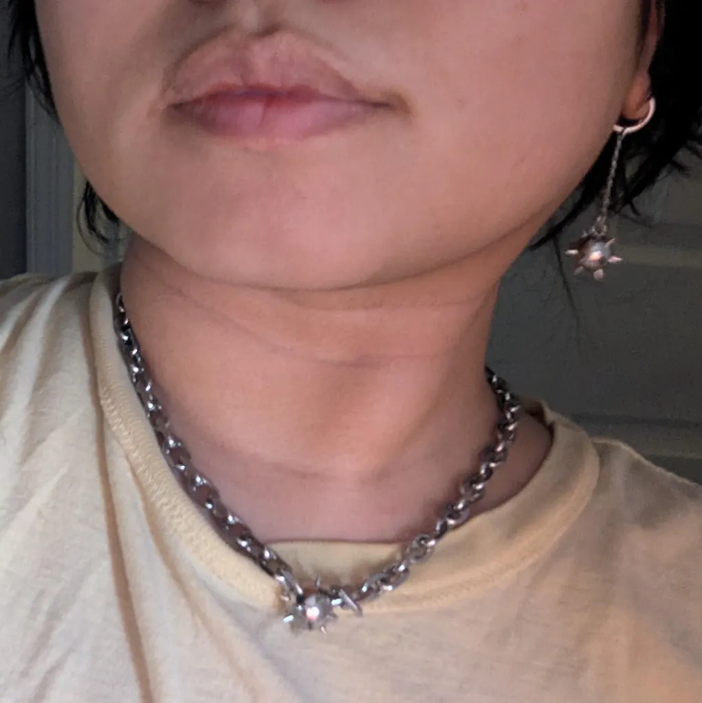 Este collar es una nueva versión muy esperada de nuestro exclusivo diseño de bola con púas.