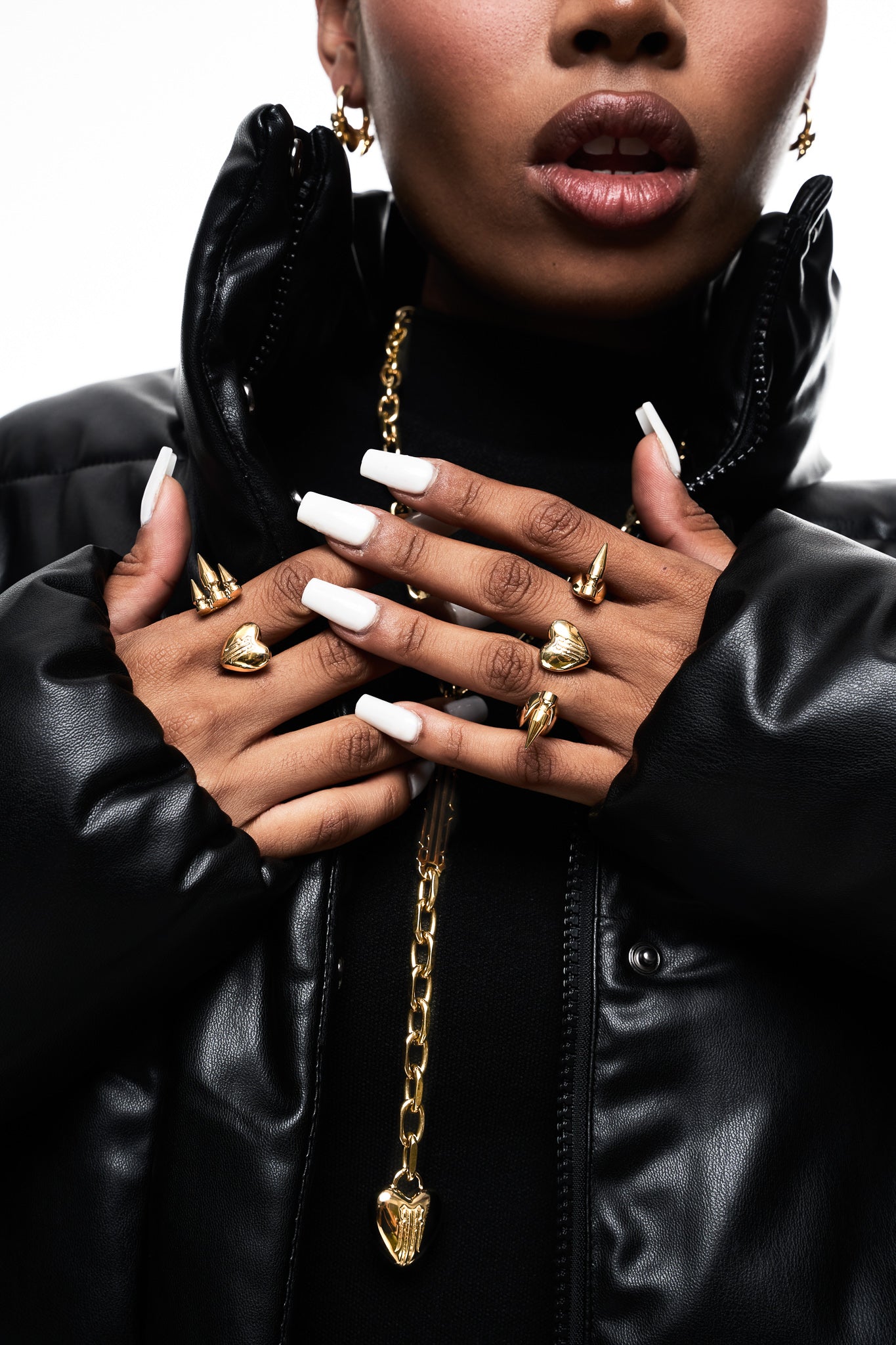 Este anillo, que retrata la dicotomía emocional entre ser duro y suave, equilibra ambos a la perfección para crear imágenes únicas. Lujosamente ponderado y fácil de poner. Esta pieza puede combinarse perfectamente para el uso diario o como complemento de un look extravagante. Se envía en embalaje de la marca RARE-ROMANCE, perfecto para regalos.