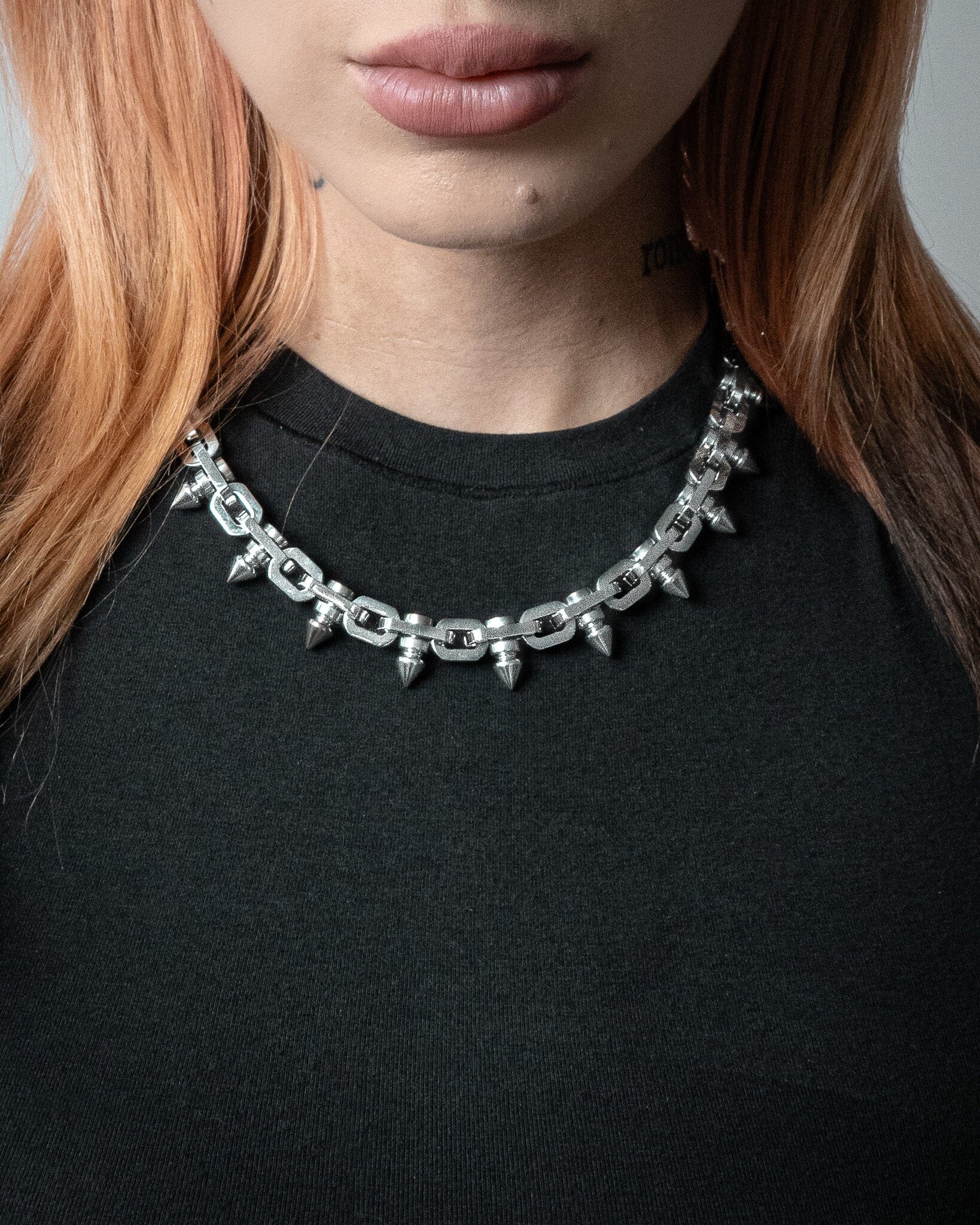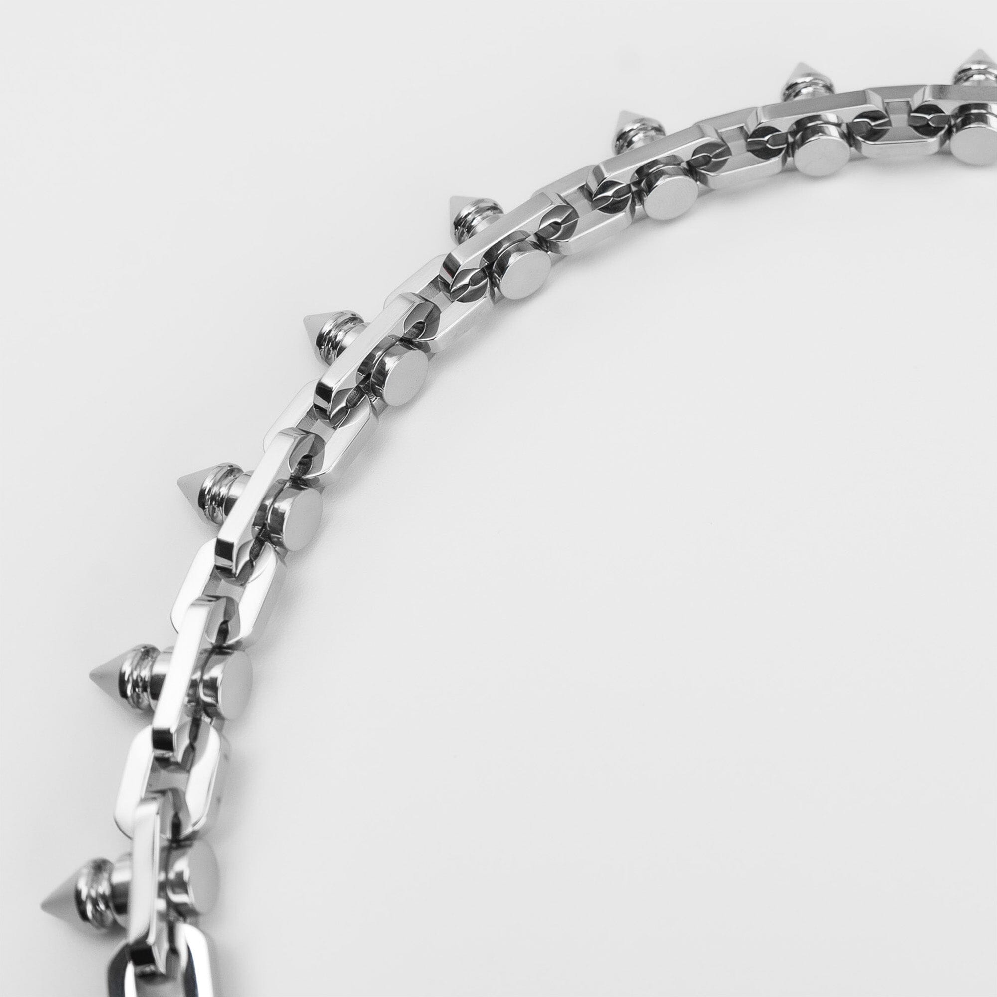 This is a chain built to demand attention. Massive, sharp spikes encircle the link chain, creating an industrial silhouette that refuses to fade into the background. Whether you’re layering it over a tee or wearing it solo on your bare neck, this piece makes presence. The 2-inch adjustability gives you the freedom to dial the fit; choker tight or mid-neck loose. Adapting to your mood and fit accordingly.