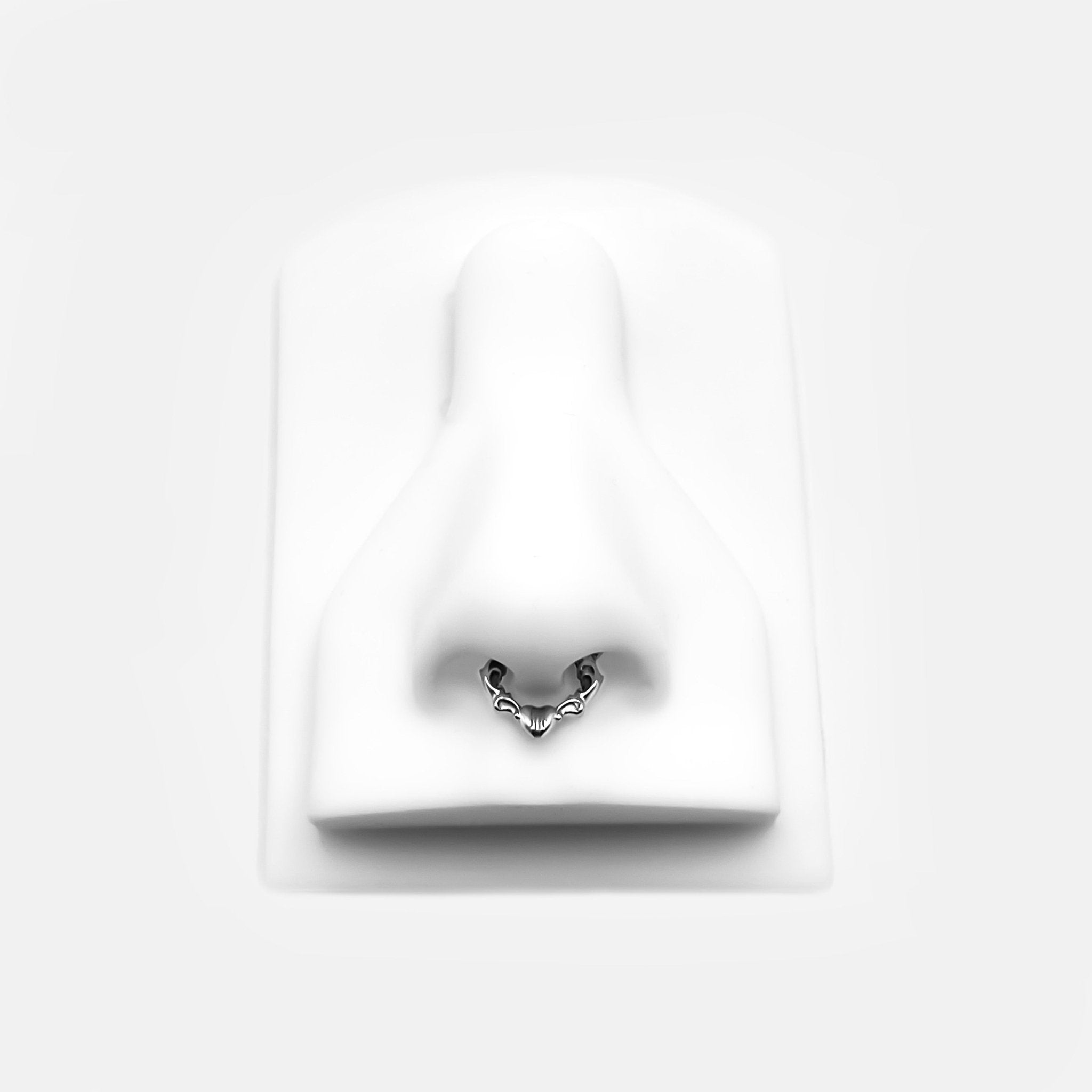 Taking inspiration from one of the most beautiful artistic eras, this Baroque Heart Clicker adds an alluring elegance to your style. This septum piercing is characterized by a particular ornate detail. Engineered with designer and skin-safe sensibility. Please note that we do not accept returns on piercing. Ships in RARE-ROMANCE branded packaging, perfect for gifts.