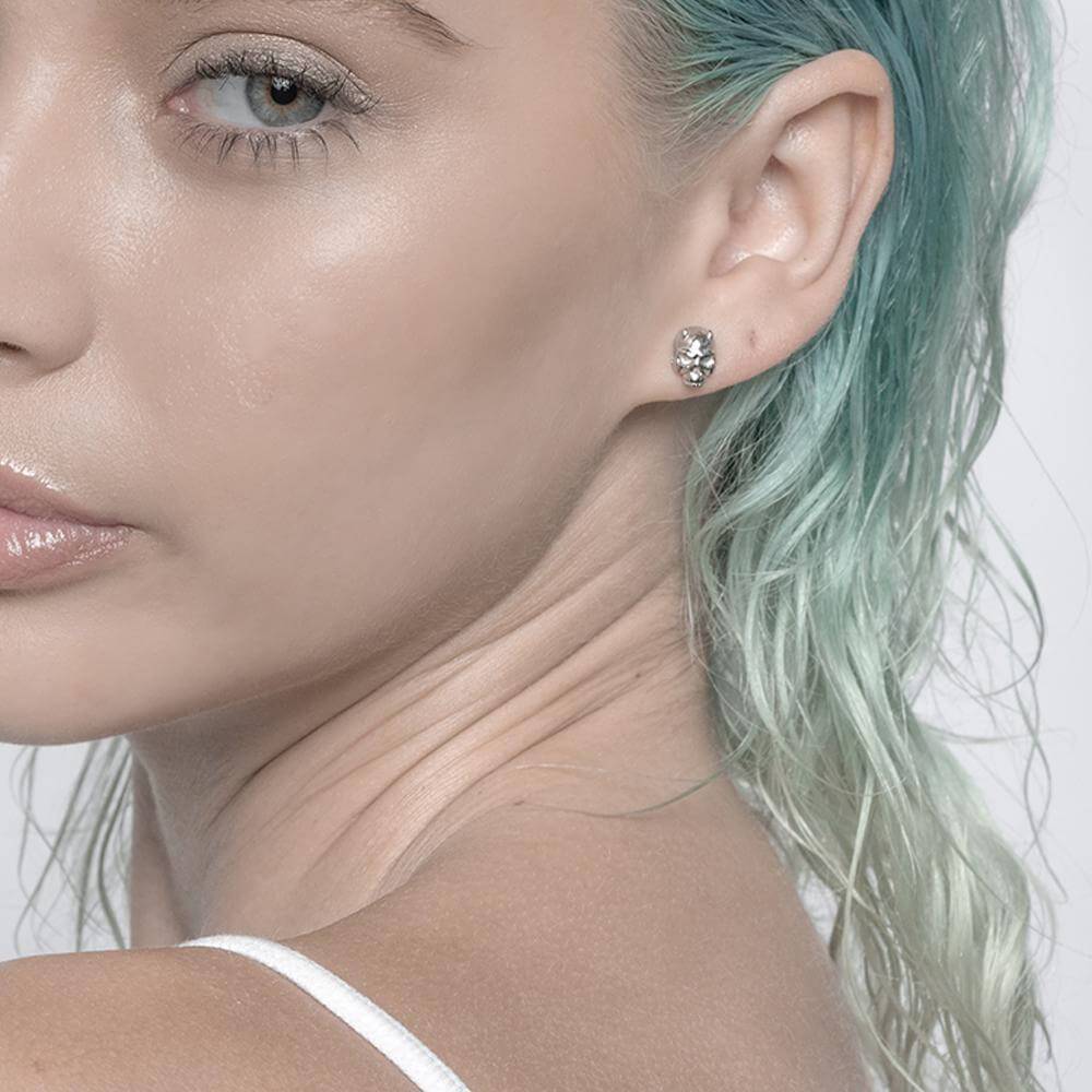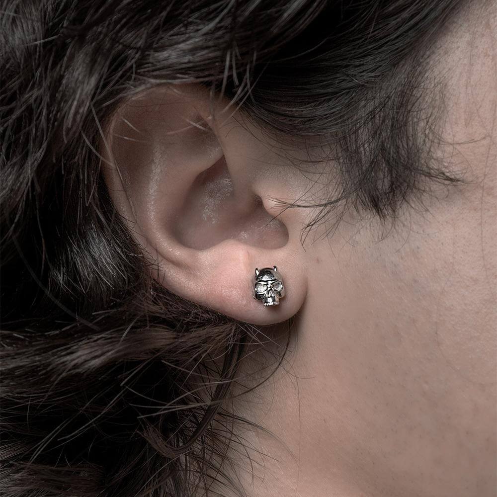 Made of hypoallergenic stainless steel available in gold, silver and black finishes, these earrings show an original skull design featuring the RARE-ROMANCE™ logo detail. Engineered with designer and skin safe sensibility. Ships in RARE-ROMANCE™ branded packaging, perfect for gifts.