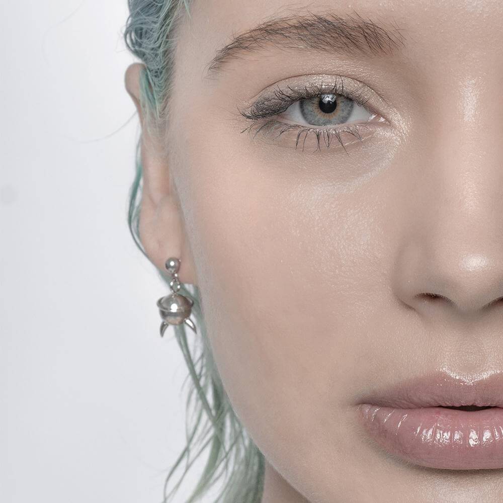 A halo topped metal ball with horns depicting the balance between good and evil. Buy a single earring as a statement piece or pair them up for the complete look. Available in gold and silver finishes, featuring the logo on the front of the ball. Ships in RARE-ROMANCE™ branded packaging, perfect for gifts.